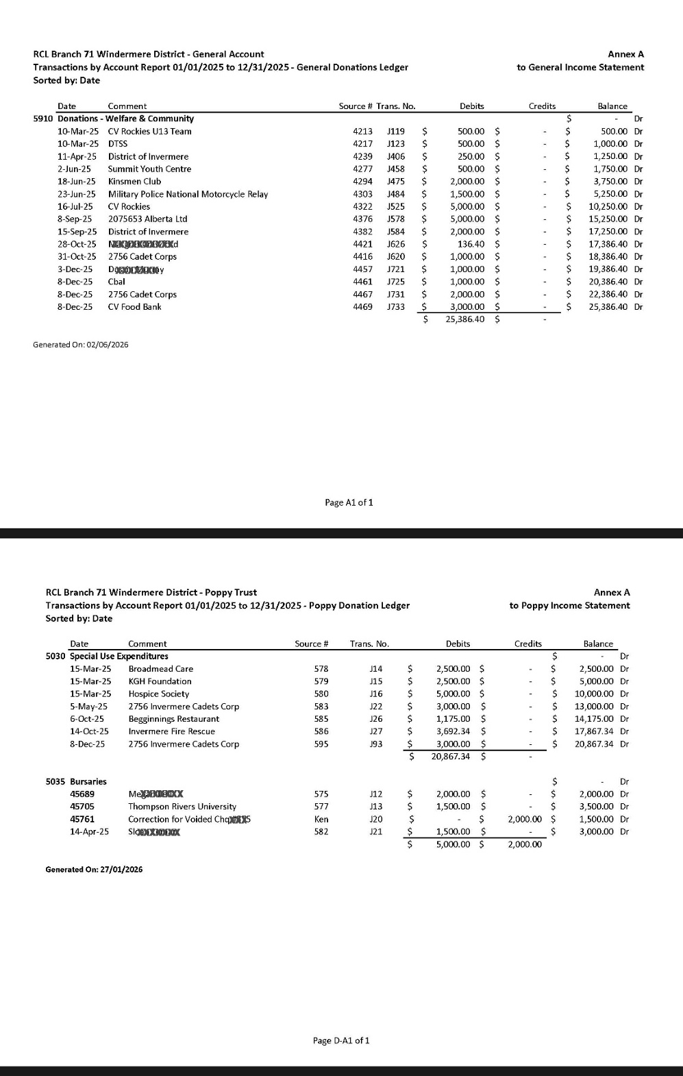 Donations 2025 Here are just some of the donations the Windermere District #71 has done in 2025. We do support our community!